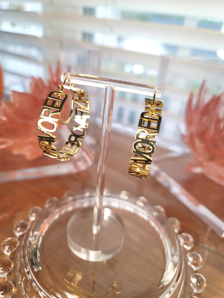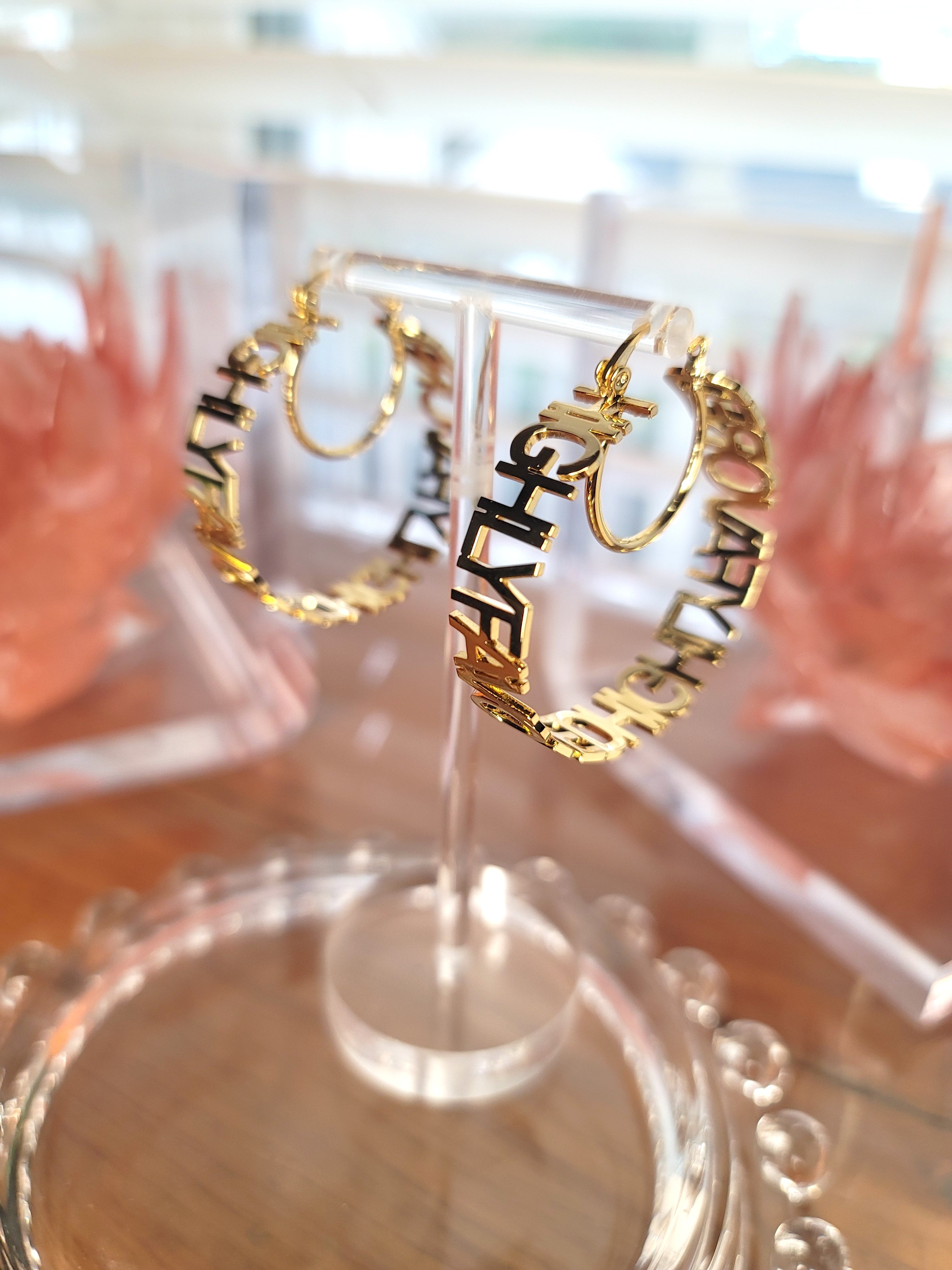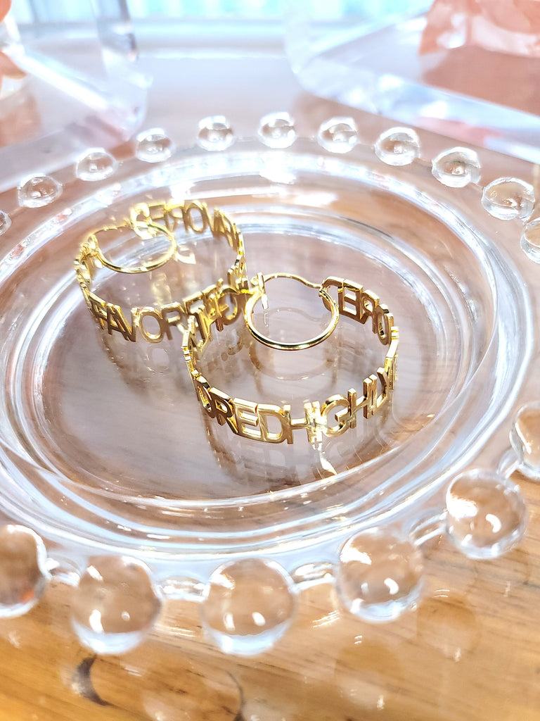 Elevate your style with the Highly Favored Hoops. 18kt gold plated stainless steel, these hoops are the perfect touch of unique style for any ensemble. Make a statement with these must-have accessories.