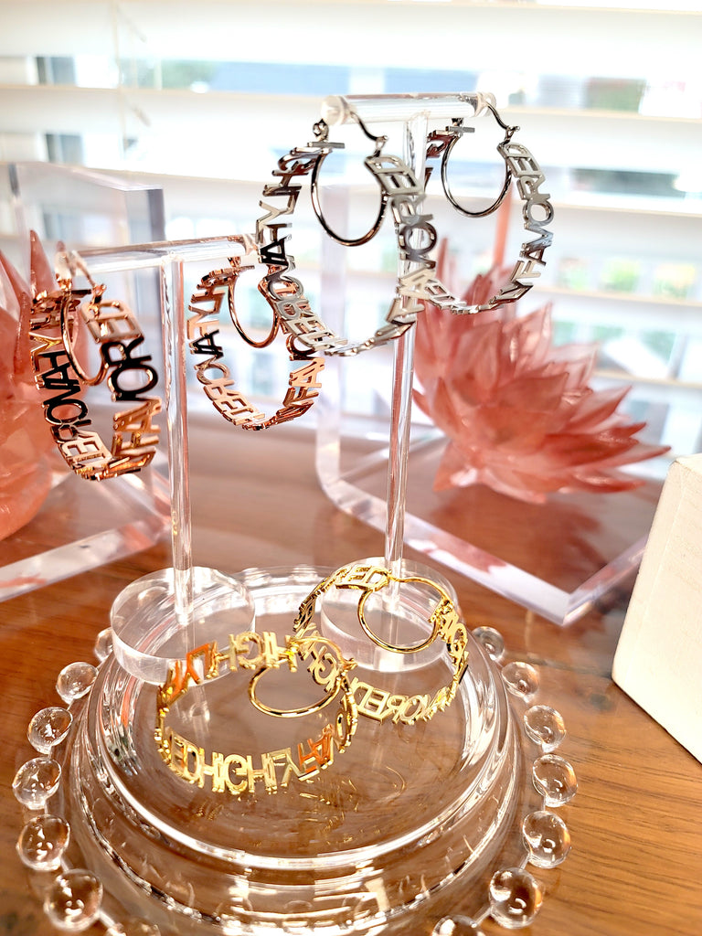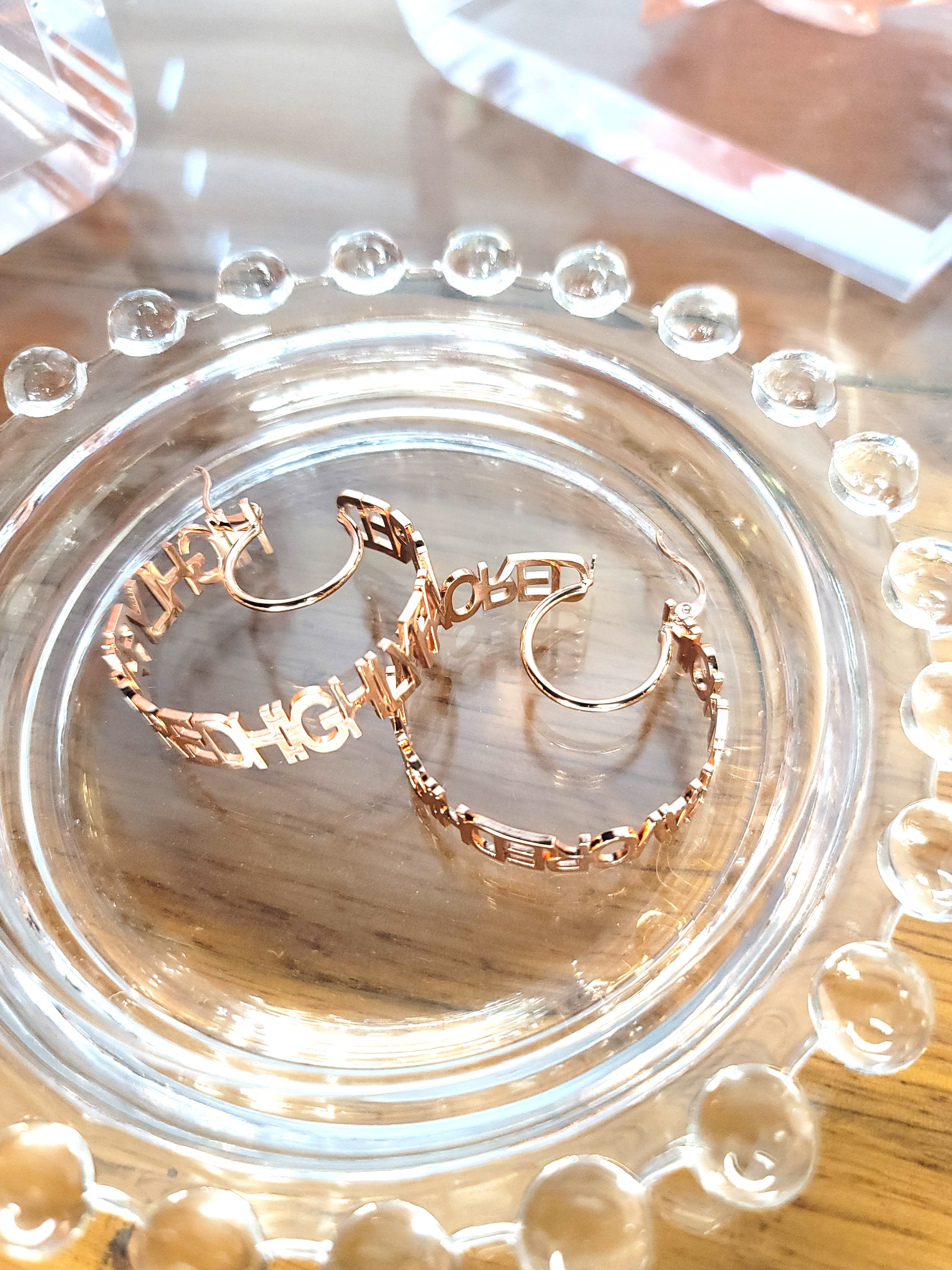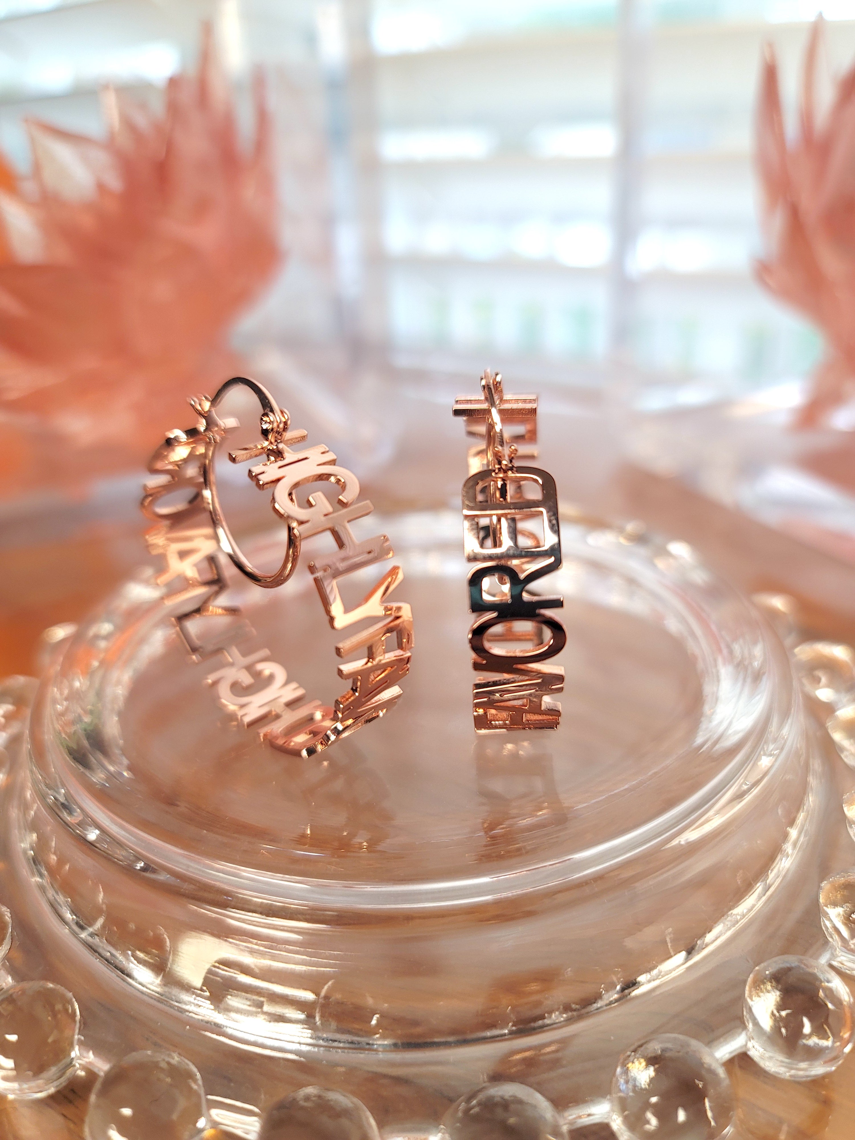 Elevate your style with the Highly Favored Hoops. Rose gold plated stainless steel, these hoops are the perfect touch of unique style for any ensemble. Make a statement with these must-have accessories.
